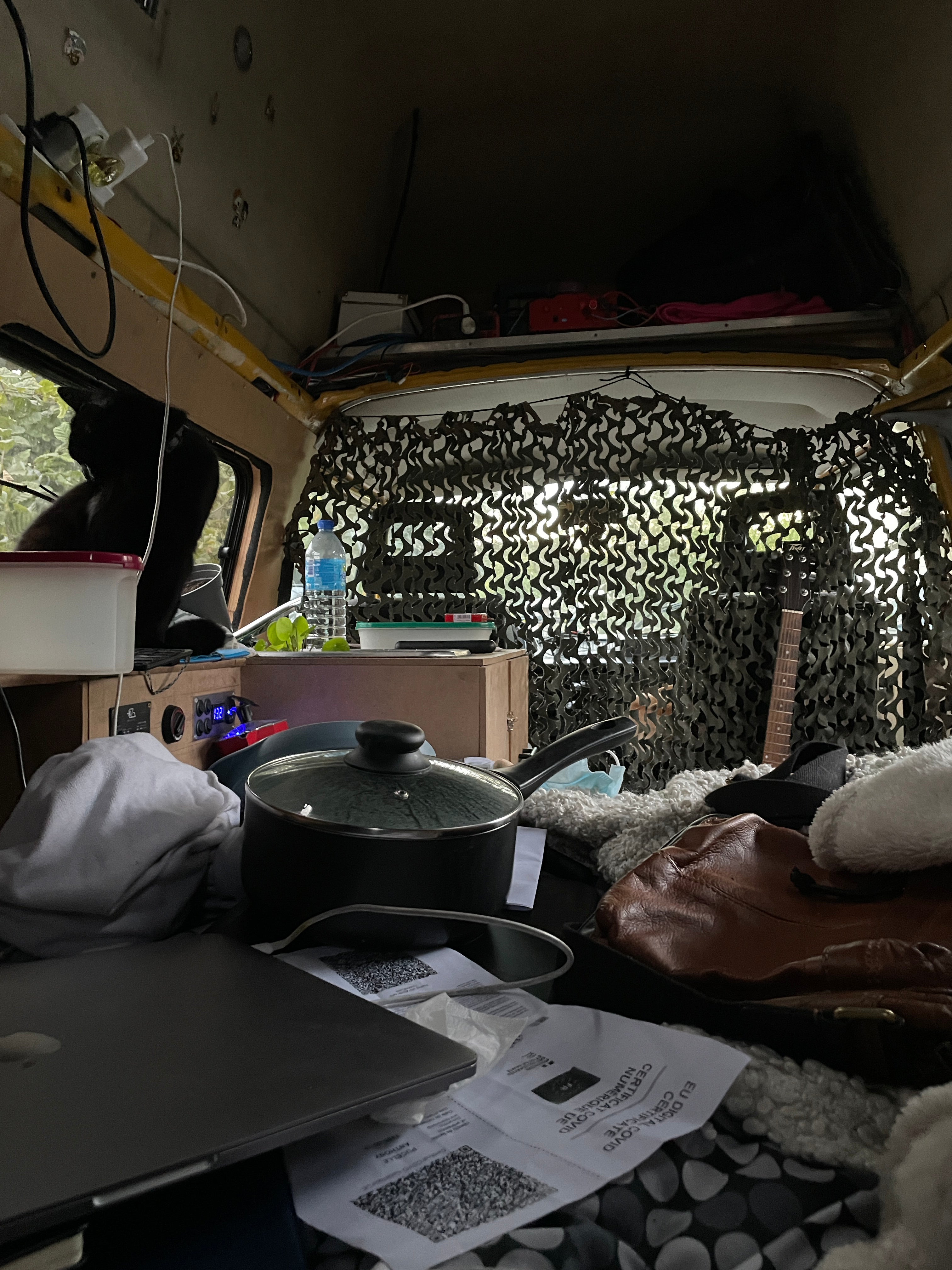 From 2021 to 2023 I lived in my van with my black cat, traveling around France and converting the van into my home.